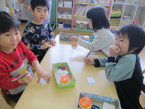 12/18 こどもたちの写真 今週の製作帳はクリスマス☆ こどもたちの写真 サンタさんとトナカイを折るよ! こどもたちの写真 きれいなのできてきたよ!ピース! こどもたちの写真 言葉探しゲームをしました こどもたちの写真 ひらがなかけるよ こどもたちの写真 今日の優勝はピンクチームでした こどもたちの写真 「ゆり組 鏡もち。よいお年をお迎えください」