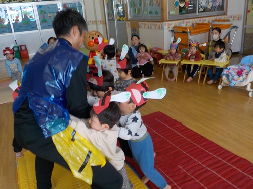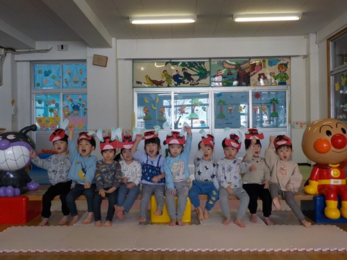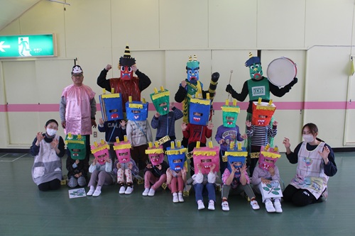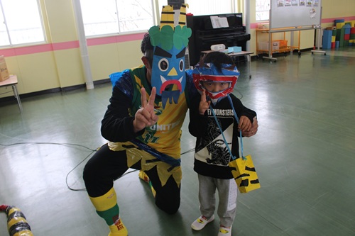 2/3 こどもたちの写真 豆まきでした こどもたちの写真 仲良くなりました こどもたちの写真 鬼は~そと~ こどもたちの写真 最後は仲良く記念写真 こどもたちの写真 未満さん豆まきでした こどもたちの写真 いくぞー!